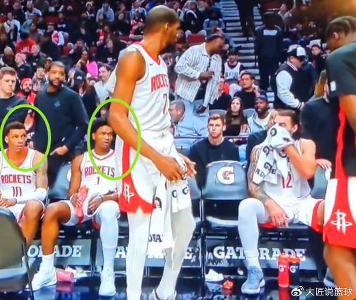 从慢镜头来看,坐在杜兰特身旁的阿门与小贾都被杜兰特这突如其来的发怒吓呆了,怔怔得看着杜兰特。