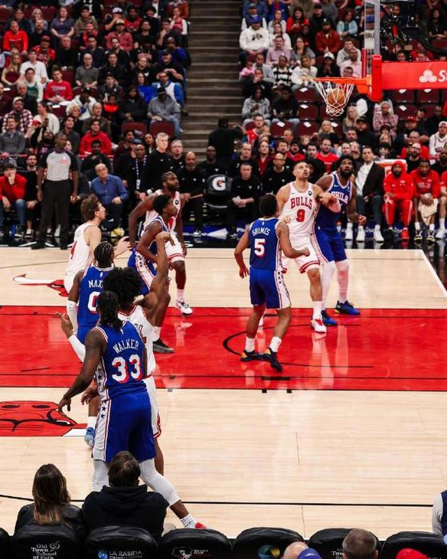 面对费城强大的进攻火力,公牛球员显得有些应对不足,他们既防不住马克西的突破,也挡不住恩比德在篮下制造的杀伤。从第二节开始,费城便始终保持着20分左右的领先优势。吉迪持球策动进攻,看到队友并没有跑出合适的位置,吉迪只能迎着费城的双人包夹强行突破,在制造犯规之后两罚全中。马克西投篮不中,吉迪的三分球也弹筐而出,费城在上半场结束时保持着19分的领先优势。