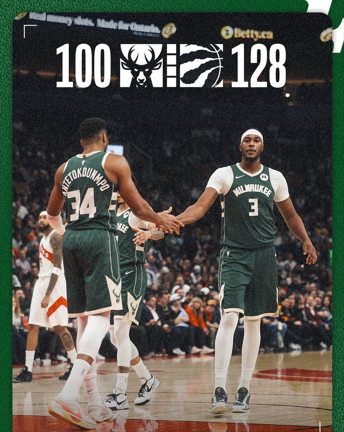 在昨天客场压哨绝杀步行者之后,雄鹿今天又背靠背在客场挑战猛龙,最终以100-128惨败给猛龙,送给猛龙3连胜。不过雄鹿还是以5胜3负的战绩高居东部第四,猛龙战绩则来到4胜4负,胜率达到了50%。